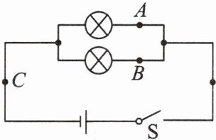 联在被测电路中。(2)闭合开关,测出通过C点的电流后,小明把电流表分别接入到电路中的A、B两点,测出通过A、B两点的电流,填入下表。