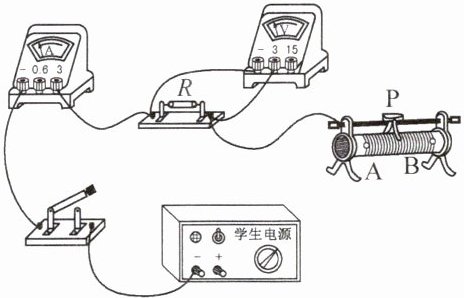 (4)滑动变阻器的最大阻值为15Ω,定值电阻的最大阻值为25Ω,$\frac{U_{0}}{U_{滑}}=\frac{R}{R_{滑}}$,$\frac{U_{0}}{U - U_{0}}=\frac{R}{R_{滑}}$,$\frac{3V}{U - 3V}=\frac{25\Omega}{15\Omega}$,解得:U = 4.8V,故电源电压只能在3~4.8V之间。