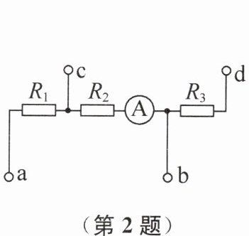 2. 某电器的内部电路如图所示,其中$R_{1}= 12\ \Omega$。当在a、b两个接线端口接入电压为10 V的电源时,电流表的示数为0.5 A;而把此电源(电压恒定)接在c、d两个接线端口时,电流表示数为1 A,则下列判断正确的是 (