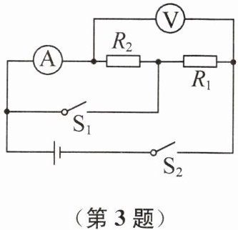 3. (2024·南通海安期末)如图所示,电源电压保持不变,当开关$S_{1}$断开、$S_{2}$闭合时,电流表的示数为$I_{1}$,电压表的示数为$U_{1}$,将电压表、电流表的位置互换,当开关$S_{1}$、$S_{2}$都闭合时,电压表示数为$U_{2}$,电流表示数为$I_{2}$,已知$I_{1}:I_{2}= 1:3$,下列说法正确的是 (