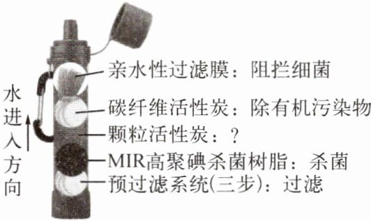 (2) 自然界的水通常需要净化后才能饮用。某种便携式净水器适合长期野外工作人群使用,其内部结构示意图如图所示,请结合示意图回答下列问题: