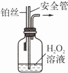 (3) 实验改进:用$H_{2}O_{2}$制取氧气时,也可用铂丝代替$MnO_{2}$作催化剂。催化剂的特点是在化学反应前后其______没有发生改变。下图装置可通过铂丝的上下移动控制______,若制备过程中体系内压强过大,则安全管中的现象是______,此时应将铂丝抽离过氧化氢溶液。