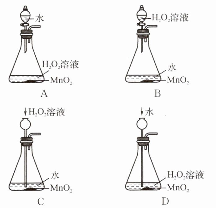 (2) A装置中虽有分液漏斗,但控制的是水的量,水不参加反应,无法控制反应速率;B装置通过分液漏斗控制加入过氧化氢溶液的量,能够控制反应速率,获得平稳的气流;C装置中长颈漏斗无法控制加入过氧化氢溶液的量,不能获得平稳的气流;D装置中长颈漏斗加水,水不参加反应,无法控制反应速率。