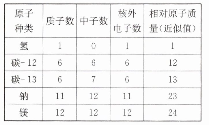 (1) ①不是所有的原子都有中子 ②相对原子质量(近似值)等于质子数和中子数之和 ③原子中质子数不一定等于中子数(合理均可)