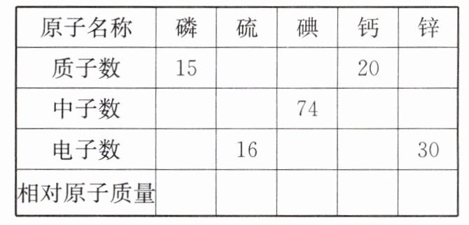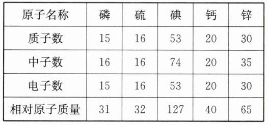 7. (1)下表列出了几种原子的构成及相对原子质量的大小,其中电子的质量约是中子或质子质量的$\frac {1}{1836}$。通过观察分析,可以总结出一条规律:在原子中,质子数等于核外电子数。你一定还能总结出其他规律,请填写。