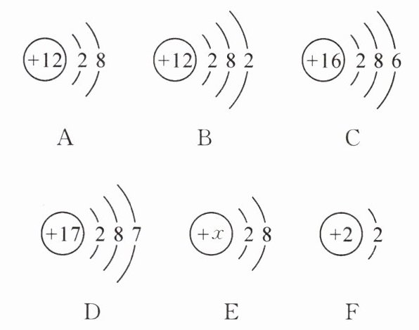 (填字母)。(3) E 粒子带 1 个单位负电荷,则 x=