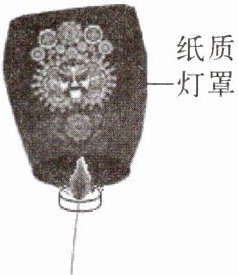 ,从而产生浮力把灯托起来。(2) 传统孔明灯纸质灯罩着火点低于燃料燃烧火焰温度,但灯罩不会燃烧起来,是因为不满足燃烧所需要的