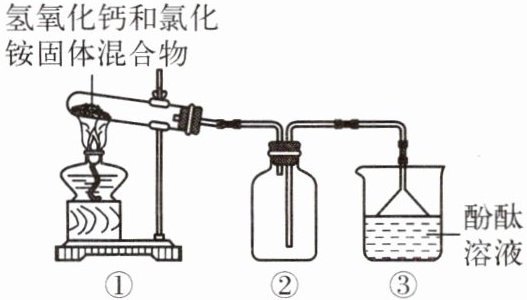 3. (镇江丹阳期末)实验室利用如图所示装置制备、收集并验证 NH_3 的性质。试管内发生反应的化学方程式为 Ca(OH)_2 + 2NH_4Cl $\xlongequal{\triangle}$ CaCl_2 + 2NH_3↑ + 2H_2O。下列说法不正确的是(