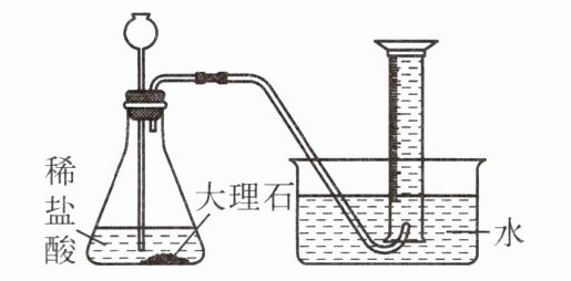 (3) 探究溶解速率:该小组用排水法收集$CO_{2}$,如图所示,待收集 100 mL$CO_{2}$后,移出导管。每隔一段时间观察并记录量筒内$CO_{2}$体积。重复实验,所测数据平均值如表所示。