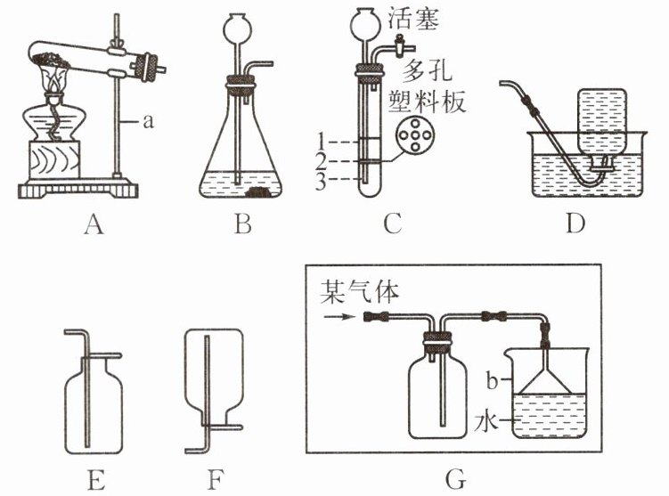 (填“1”“2”或“3”)处。(3) G 装置可以用来收集气体,还可以防倒吸。请你推测该气体的密度