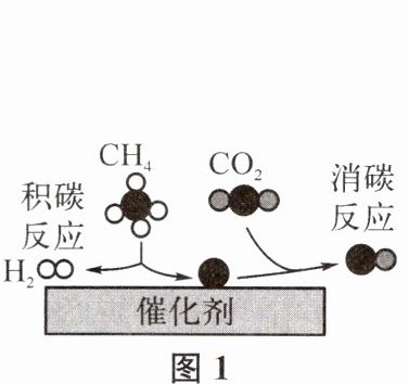 (4)$CH_{4}$与$CO_{2}$在催化剂作用下可得到合成气($CO和H_{2}$),反应过程中催化剂表面还同时存在积碳反应和消碳反应,原理如图1所示。