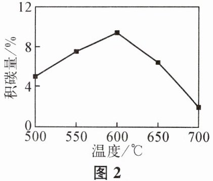 ③其他条件不变,催化剂表面的积碳量随温度变化如图2所示。温度高于$600^{\circ}C$,催化剂表面积碳量减少的原因可能是