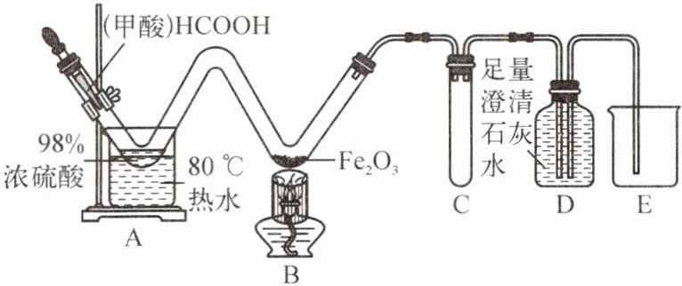 ③A 处发生的反应: HCOOH $\xlongequal[\triangle]{浓硫酸}$ CO↑ + H_2O。
