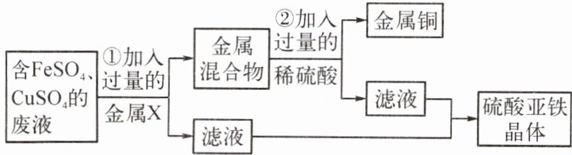 6. 某兴趣小组的同学从实验室收集到一桶含有$FeSO_4、$$CuSO_4$的废液,他们想从中回收金属铜和硫酸亚铁晶体,设计了如下实验方案。结合实验方案回答下列问题: