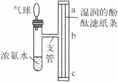 实验一:将浓氨水加入左侧试管中,3min后观察到ab段滤纸条先变红。