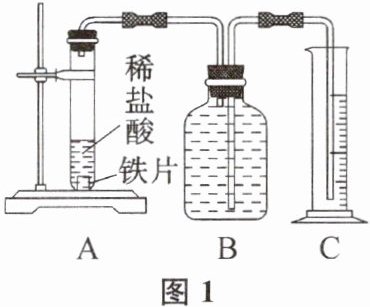 方案甲:称得生锈铁片的质量为$m_{1}g$,按图1所示装置进行实验,完全反应后,测得室温下产生氢气的体积为$V_{1}L$,查得其密度为$ρ_{1}g/L$。