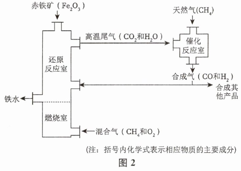 。②流程中$CH_4$除产生还原性气体外,还有的作用是