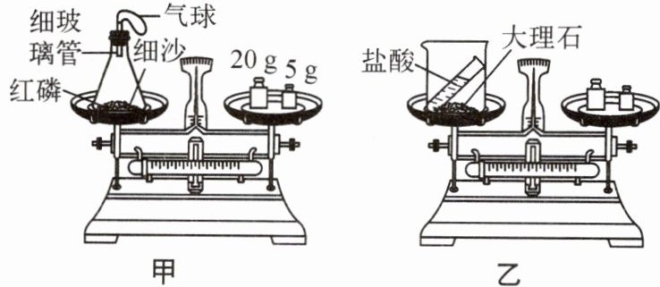。(2)乙组实验试剂混合前后称量的质量关系为$m_{前}>m_{后}$,原因是