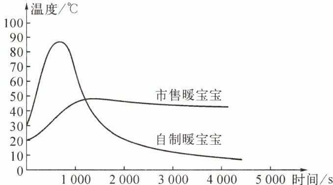 (2) 利用温度传感器测得两种不同暖宝宝使用时温度变化的曲线如图所示。与市售暖宝宝相比,自制暖宝宝用来取暖的不足:
