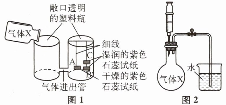 (1)变化→性质:小科用图1装置进行实验,向左侧塑料瓶里倒入足量的气体X,观察到试纸A不变红,试纸B比C先变红。据此推测气体X有哪些性质?______。