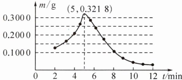 (4)$5\ \text{min}$之前氧化亚铜的质量增大,$5\ \text{min}$之后氧化亚铜的质量减小