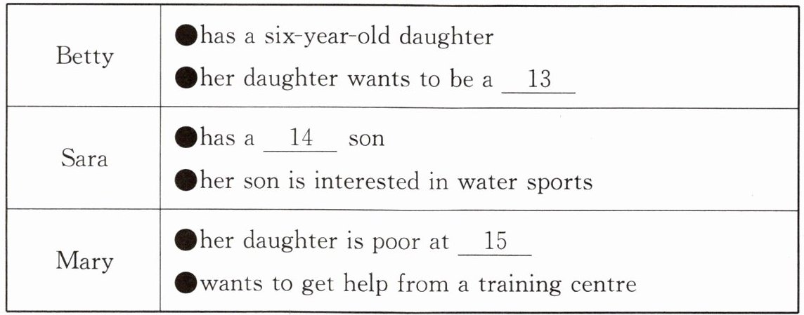 听第一篇短文,回答第13~15小题。请根据短文内容选择正确答案,完成信息记录表。答题完毕,请等待“嘀”的信号,进入下一篇短文。