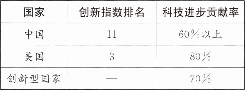 (1)问,图表信息体现了我国与发达国家在创新能力方面的差距,可联系创新的重要性作答。第