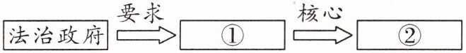 10 学习了“法治政府”后,小珊绘制了一组记忆图示,①、②处分别应填入的内容是( )
