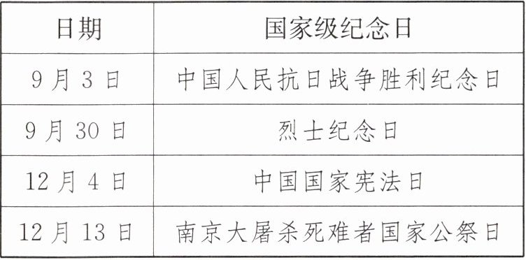 |日期|国家级纪念日|