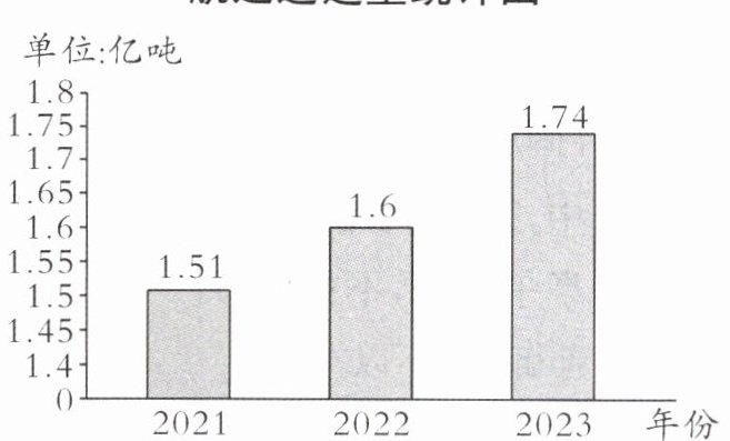 (3)2021—2023年,三峡枢纽航运通过量逐年增长。(意思相近即可)