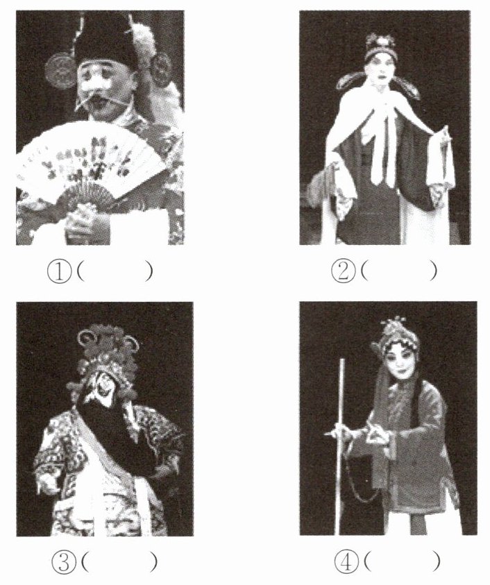 (2)跨学科 京剧“四大行当” 下面是小安搜集的京剧“四大行当”剧照,请选择恰当的序号填空。
