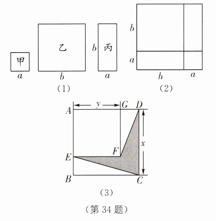 34 中考新考法 综合与实践 (2025·黑龙江哈尔滨期末)数学活动课上,老师准备了若干个如图(1)的三种纸片.甲种纸片是边长为a的正方形,乙种纸片是边长为b的正方形,丙种纸片是长为b、宽为a的长方形.