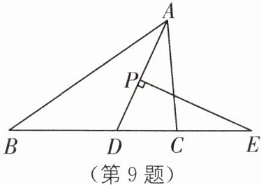 9 (2025·河南南阳淅川期末改编)如图所示,在△ABC 中,AD 平分∠BAC,点 P 为线段 AD 上的一个动点,PE⊥AD 交 BC 的延长线于点 E.若∠B= 35°,∠ACB= 85°,求∠E 的度数.