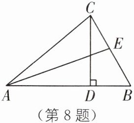 8 (2024·凉山州中考)如图,在△ABC 中,∠BCD= 30°,∠ACB= 80°,CD 是边 AB 上的高,AE 是∠CAB 的平分线,则∠AEB 的度数是 .