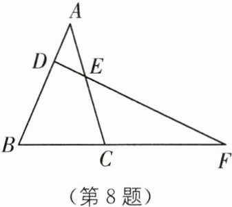 8.因为∠A+∠B+∠ACB=180°,所以∠A=180°−67°−74°=39°,所以∠BDF=∠A+∠AED=39°+48°=87°.