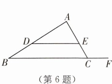 6 教材 P17习题 T6·变式 如图,点D,E分别在△ABC的边AB,AC上,且DE//BC,点F在线段BC的延长线上.若∠ADE= 28°,∠ACF= 118°,则∠A= ______°.