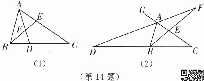 14 如图,在△ABC中,点E在AC上,∠AEB= ∠ABC.