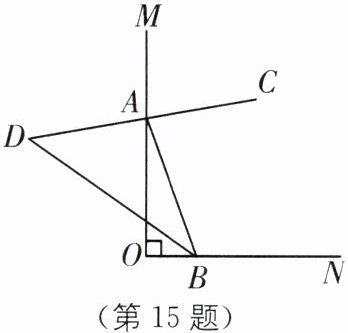 15 双角平分线模型 如图,已知∠MON= 90°,点A,B分别在射线OM,ON上移动(不与点O重合),AC平分∠MAB,AC的反向延长线与∠ABO的平分线相交于点D.