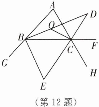 12 如图,在△ABC中,∠ABC,∠ACB的平分线交于点O,D是∠ACF与∠ABC平分线的交点,E是△ABC的两外角∠BCH和∠CBG的平分线的交点,若∠BOC= 130°,则∠D的度数为______.