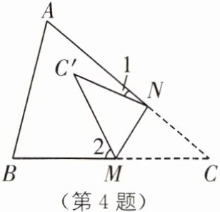 4 (1)如图,在三角形纸片 ABC 中,∠A= 64°,∠B= 76°,将纸片的一角折叠,使点 C 落在△ABC 内部,折痕为 MN. 如果∠1= 17°,求∠2 的度数.
