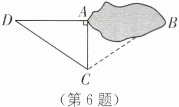 6 教材 P36 练习 2·变式(2025·广东汕头期末改编)如图,要测量水池的宽度 AB,可从点 A 出发在地面上画一条线段 AC,使 AC⊥AB,再从点 C 观测,在 BA 的延长线上测得一点 D,使∠ACD= ∠ACB,这时量得 AD= 80 m,求水池宽 AB 的长度.