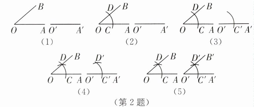 2 教材 P39思考·拓展 (2025·宁夏中卫期末)下面是"作一个角等于已知角"的尺规作图过程.
