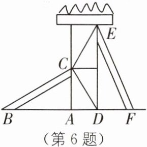 6 教材 P43 练习 T1·拓展 如图所示,有两个长度相同的滑梯 BC 和 EF,CA⊥BF,ED⊥BF,垂足分别为 A,D,左边滑梯的高度 AC 与右边滑梯水平方向的长度 DF 相等.问:两个滑梯的倾斜角∠ABC 和∠DFE 的大小有什么关系?