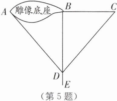 5 新情境 测量孔子雕像的宽度 (2025·山东淄博张店区重庆路中学期中改编)山东曲阜是孔子的故乡,在曲阜博物馆广场中央矗立着地标性建筑孔子雕像,总高 27 米,A,B 两点分别为雕像底座的两端(其中 A,B 两点均在地面上).因为 A,B 两点间的实际距离无法直接测量,甲同学设计出了如下方案:如图,先确定直线 AB,过点 B 作直线 BE,在直线 BE 上找可以直接到达点 A 的一点 D,连接 DA,作 DC= DA,交直线 AB 于点 C,最后测量 BC 的长即可.