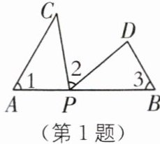 1 如图,若点A,P,B在一条直线上,∠1= ∠2= ∠3,PC= PD.求证:△APC≌△BDP,AB= AC+BD.
