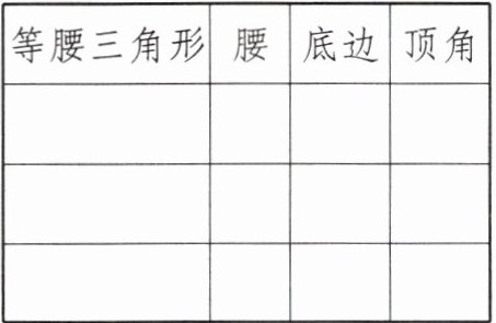 8 教材 P3 练习 T1·变式 如图,CD= CA= CB,找出图中的等腰三角形,指出它们的腰、底边和顶角,并填入表格.