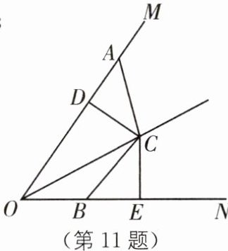11 如图,A,B 两点分别在射线 OM,ON 上,点 C 在∠MON 的内部,AC= BC,CD⊥OM,CE⊥ON,垂足分别为 D,E,且 AD= BE.