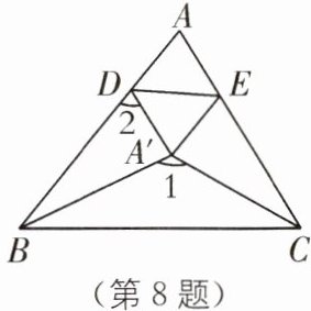 8 (2025·浙江长青教育发展共同体期末)如图,将△ABC 纸片沿 DE 折叠,点 A 落在点 A'处,恰好满足 A'B 平分∠ABC,A'C 平分∠ACB,若∠1= 125°,则∠2 的度数为______.