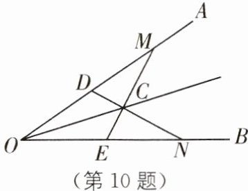10 如图,在∠AOB 的两边 OA,OB 上分别取 OM= ON,OD= OE,DN 和 EM 相交于点 C.求证:点 C 在∠AOB 的平分线上.