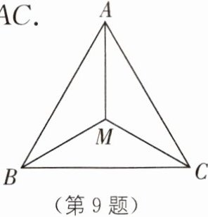 9 如图,在△ABC 中,BM= MC,∠ABM= ∠ACM.求证:AM 平分∠BAC.
